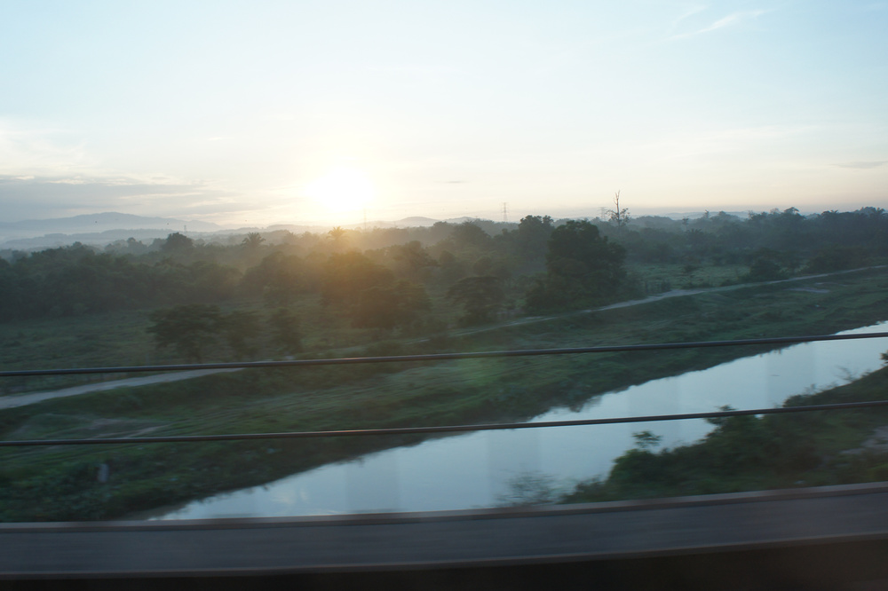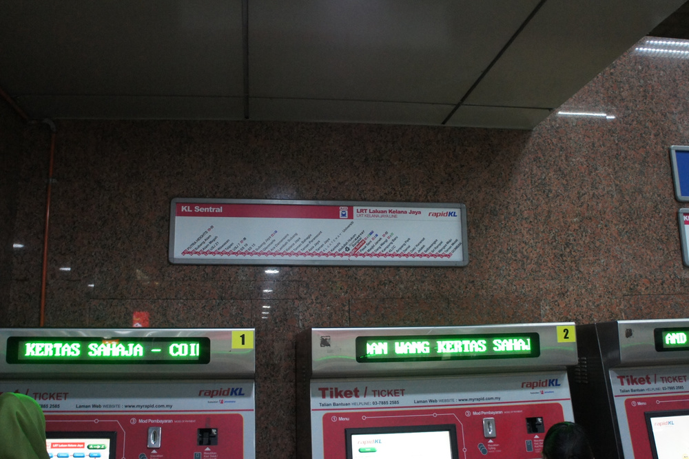 当然ながら空港からセントラルまでは停車駅もなく車窓からは朝日と南国の木々小学生のときに教科書で見たゴムの木のようなジャングル感がみえました。終点KLセントラルに到着。そこからローカル線に乗り換えツインタワーに向かいます。まずチケットがマシーンで販売されていて、その買い方が分からない!もじもじと10分・・・地元の方に聞いてはみるが英語が通じない・・・でもツインタワーは分かってもらえる。クラナ・ジャナ線という線に乗り、KLCCでおります。